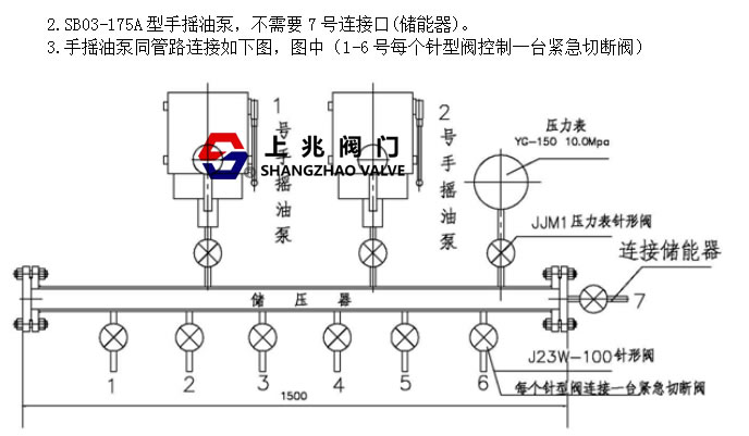 1、手搖油泵通過手柄做往復動作,使壓力增高來打壓緊急切斷閥,介質即可通過。如遇火災或其它緊急情況時,將手搖油泵的泄壓閥打開。油壓系統迅速泄壓,使緊急切斷閥立刻關閉,或溫度升高至75℃以上時,安裝在油泵或緊急切斷閥的易熔塞立刻熔化,達到自動泄壓目的,使緊急切斷閥迅速關閉。