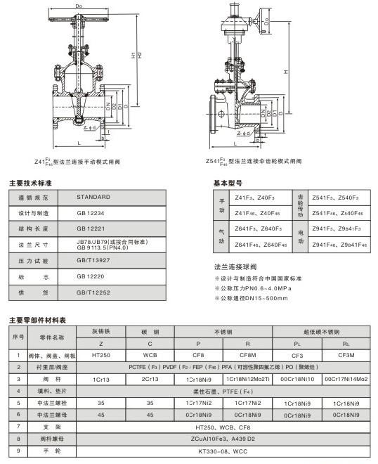 產品介紹 一、Z41J襯膠法蘭閘閥概述: 1、Z41J 襯膠法蘭閘閥產品是一種最帶見的啟閉閥門,利用兩側面密封呈楔狀的閘板來接通或截斷管路中介質,楔式閘閥不允許微量開啟在管路中作節流裝置用,以免因高速流動的介質沖蝕而加快密封面的損壞。 2、襯膠閘閥廣泛應用于化工,石油,天然氣,環保,城市管道,燃氣管線等工業部門,介質的流向不受限制,全開時,密封面受工作介質的沖蝕比截止閥小,體形比較簡單,鑄造工藝性較好. 二、Z41J襯膠法蘭閘閥特點: A 產品連接件少,整體鋼性好。 B 截流速度快。 C 開度限位機構方便,靈活,精確。 D 體形小巧,外形美觀。 E 操作簡單,省力,維修方便。 F 流體阻力小,密封面受介質的沖蝕小。 G 介質流向不愛限制,不擾流,不降低壓力。 三、Z41J襯膠法蘭閘閥標準規范: 設計制造標準:GB/T 12234 結構長度標準:GB/T 12221-2005 連接法蘭標準:GB/T 9113 壓力溫度等級:GB/T 12224-2005 試驗檢驗標準:GB/T 13927-2008 四、Z41J襯膠法蘭閘閥零件材料與工況: 1.閥體材質:碳鋼、不銹鋼。[可選] 2.密封材質:流道全襯四氟。 3.填料: PTFE。 4.閥桿材質:不銹鋼304、不銹鋼316、不銹鋼2cr13。 五、Z41J襯膠法蘭閘閥尺寸: ![]()